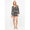 – Tecido fluido com estampa animal de zebra.