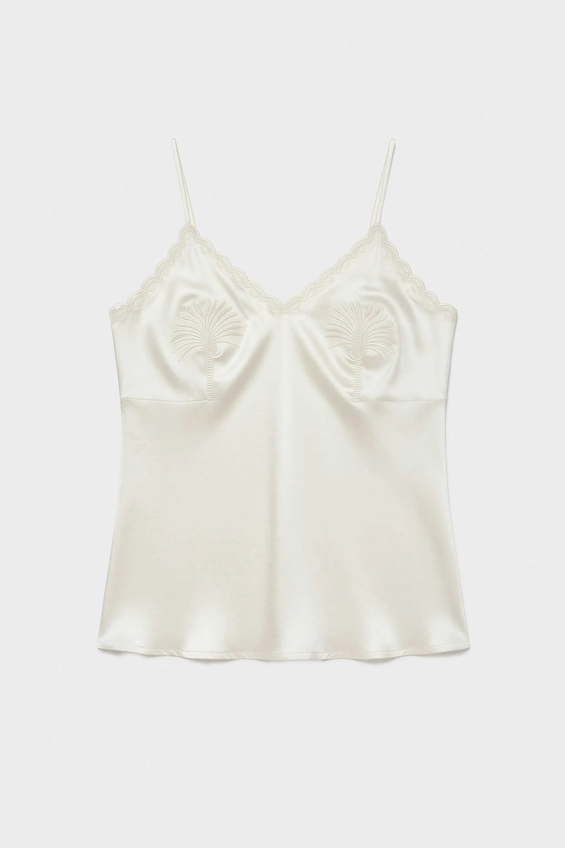 – Camisola em tecido cetim coleção noiva com alças finas e reguláveis.