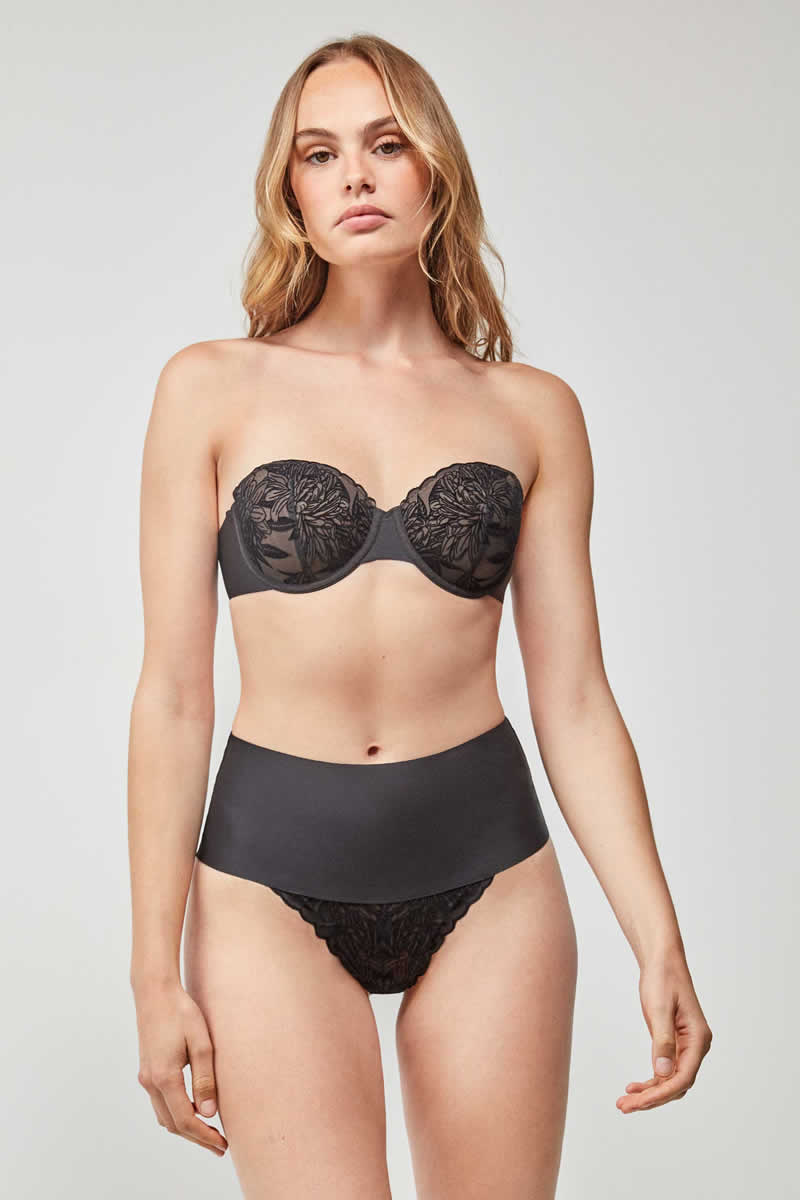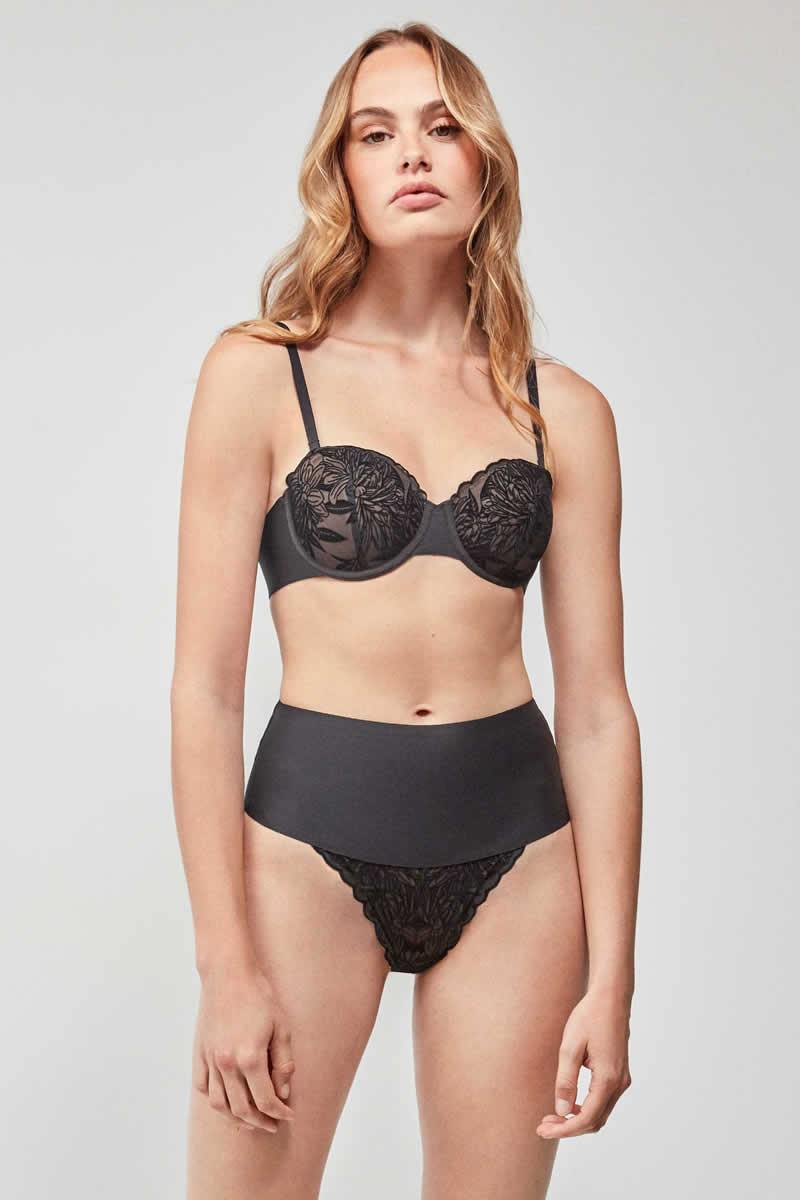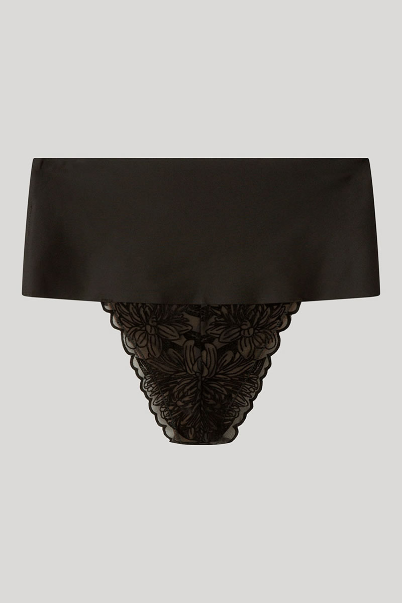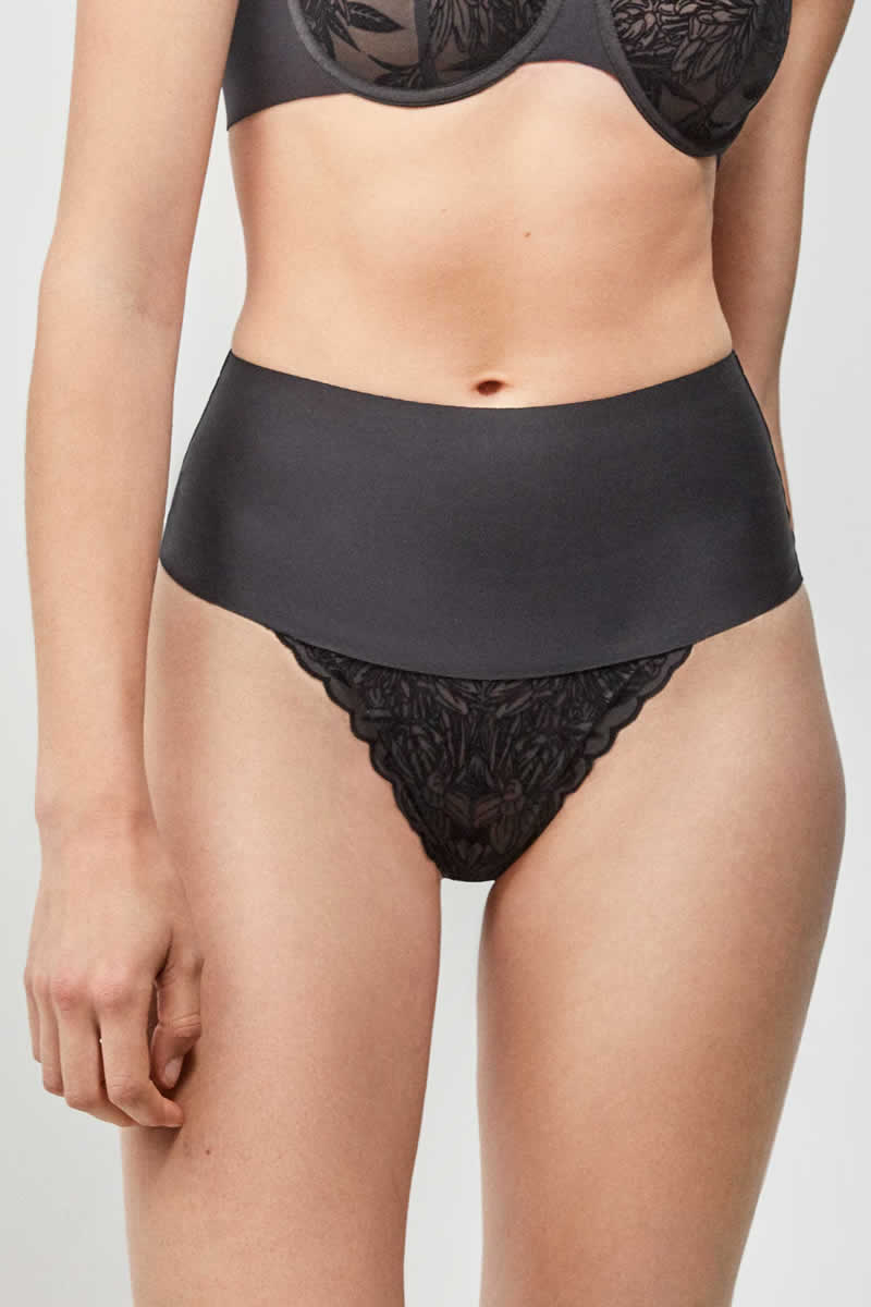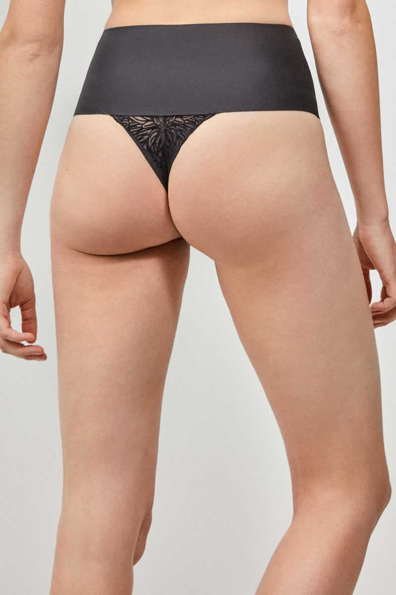 – Cueca alta sem costuras e com efeito controlo da cintura detalhes renda.