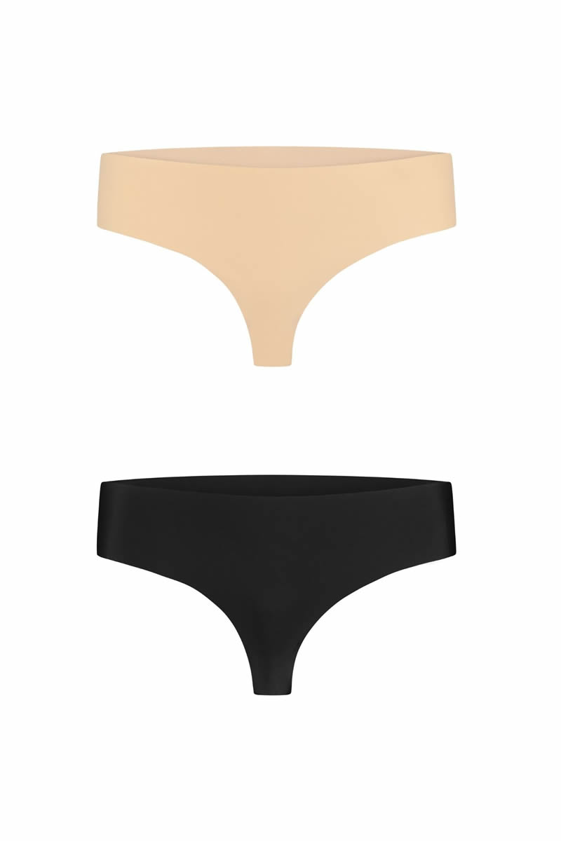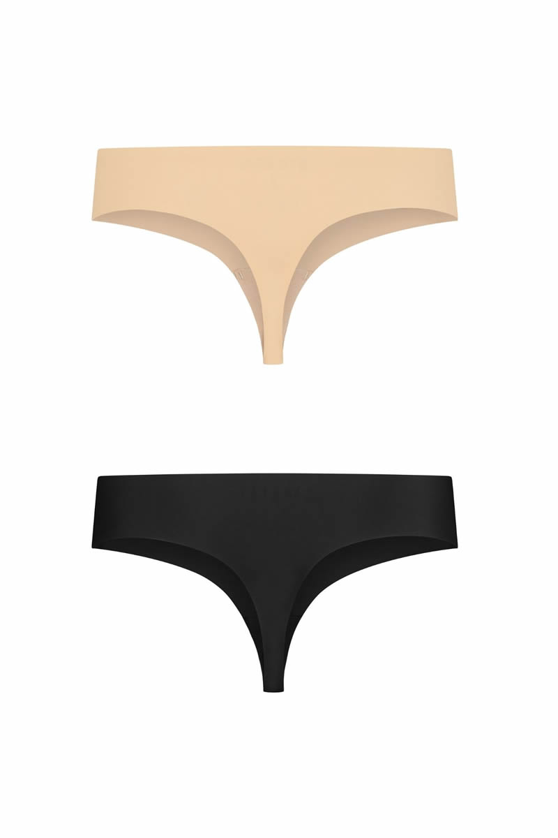 – Pack 2 cuecas string invisíveis sem costuras preto e beige.
