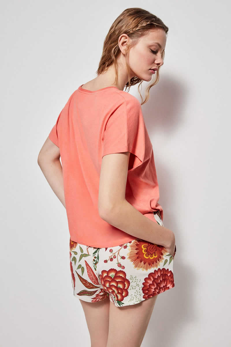 Seja o primeiro a avaliar “Pijama curto calções em contraste cor coral”