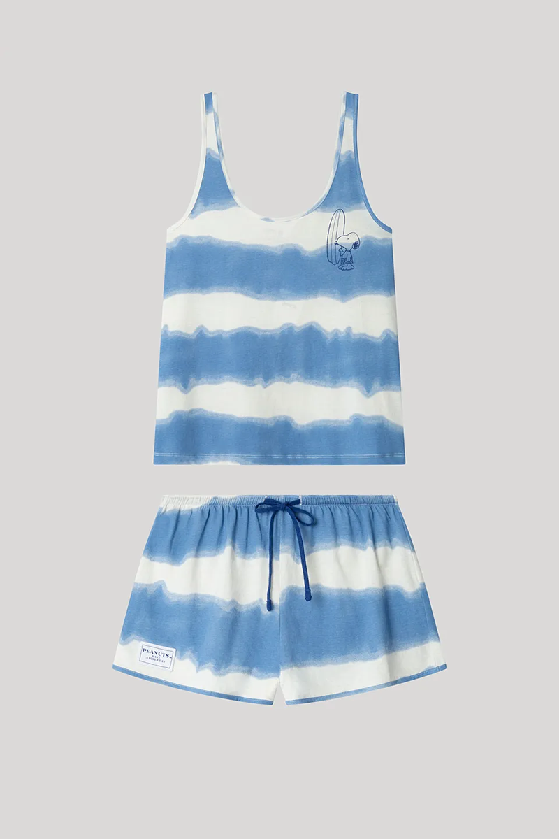 – Pijama curto com camisola de alças e detalhe de estampa de Snoopy.