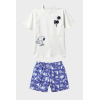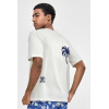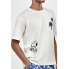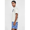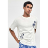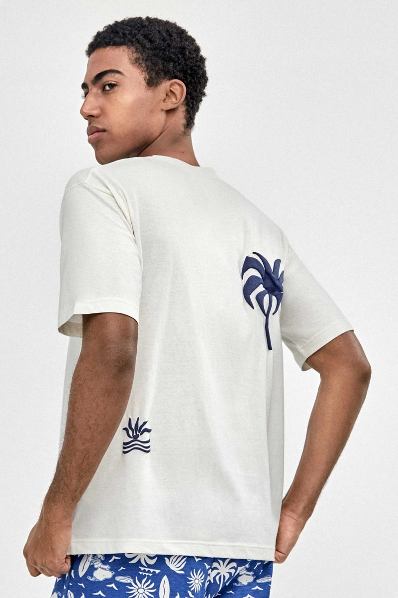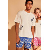 – T-shirt de gola redonda com estampado em relevo e calções com estampado tropical em cor azul-marinho, com cintura elástica e bolsos laterais.