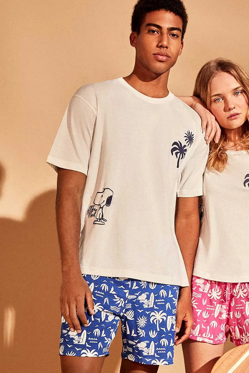 – Pijama masculino Family Time Snoopy, confecionado em 100% algodão.