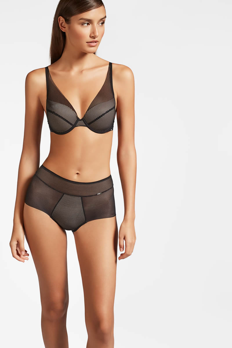 – Acabamento Infinity Band ™ desenvolvido em tecido de última geração, com chevron extra plano, ultraleve e de efeito invisível, sem debrum nas bainhas, o que evita marcas sob a roupa.