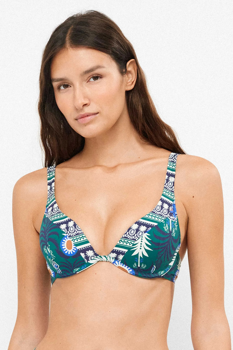 Top biquini com aro verde estampado
